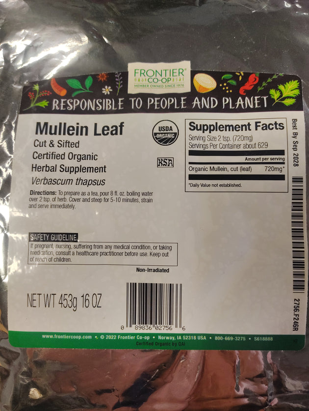 Mullein Leaf, Cut & Sifted, Organic, per OZ.