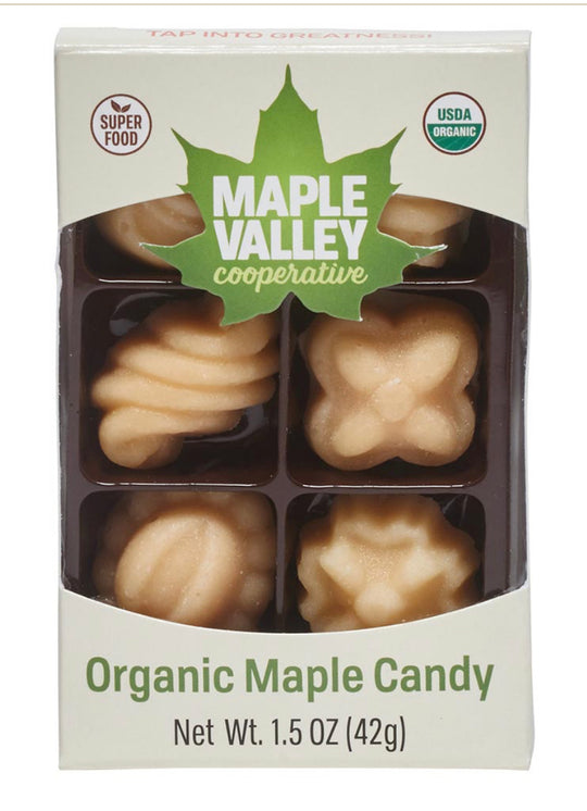Maple Valley's maple candy is made with pure certified organic maple syrup and nothing more – the ultimate natural treat! The 1.5-ounce box comes with six candies in an assortment of decorative shapes. INGREDIENTS Organic...Sale price $7.99Regular price $8.35 -