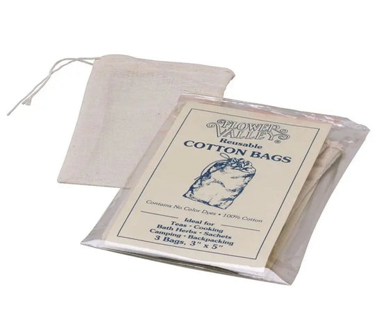 Reusable Cotton Bags are so versatile! Put bay, chives, tarragon, pepper corns or garlic cloves in a cotton bag for a recoverable seasoning in soups and stews, fill cotton bag with chamomile or lavender flowers for...Regular price $3.49 -