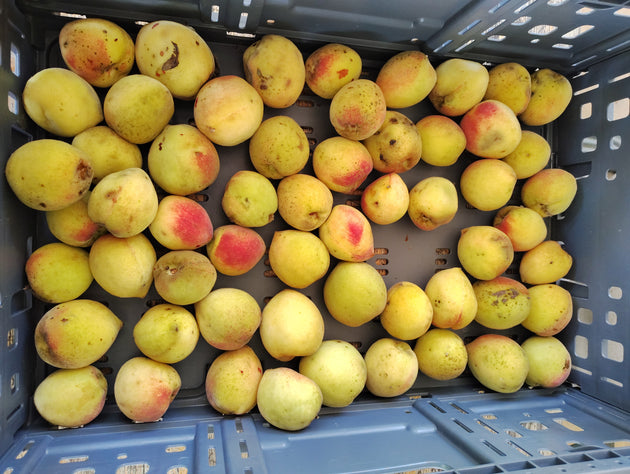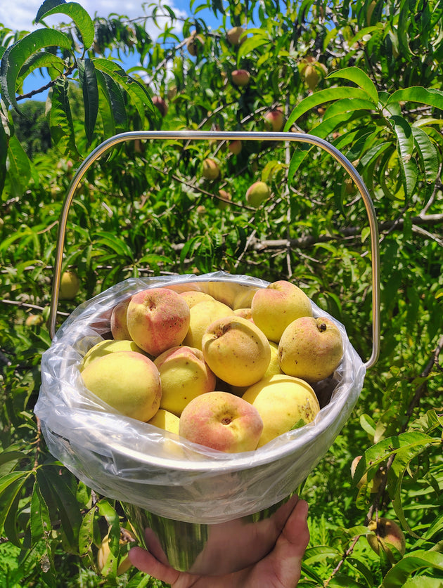 Locally Grown White Peaches, 1 Gal. "Grade B" in Stainless Steel Bucket