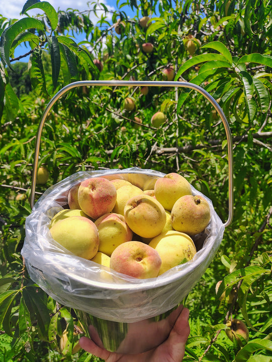 Naturally Grown White Peaches – Grade B (1 Gallon Stainless Steel Bucket, Approx. 7lbs) $29 – Includes Reusable Stainless Bucket These are real peaches—grown the old-fashioned way with nothing but sunshine, rainwater, and healthy living...Regular price $29.00 -