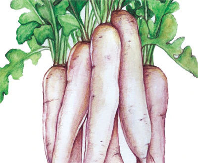 (Raphanus sativus var. longipinnatu) 65 days. [Originating from Asia, daikon (pronounced "dye-con") is the Japanese word for radish.] Juicy and flavorful, can be used fresh in salads, cooked in vegetable dishes, pickled, used in kimchi, or grated...Regular price $3.95 -