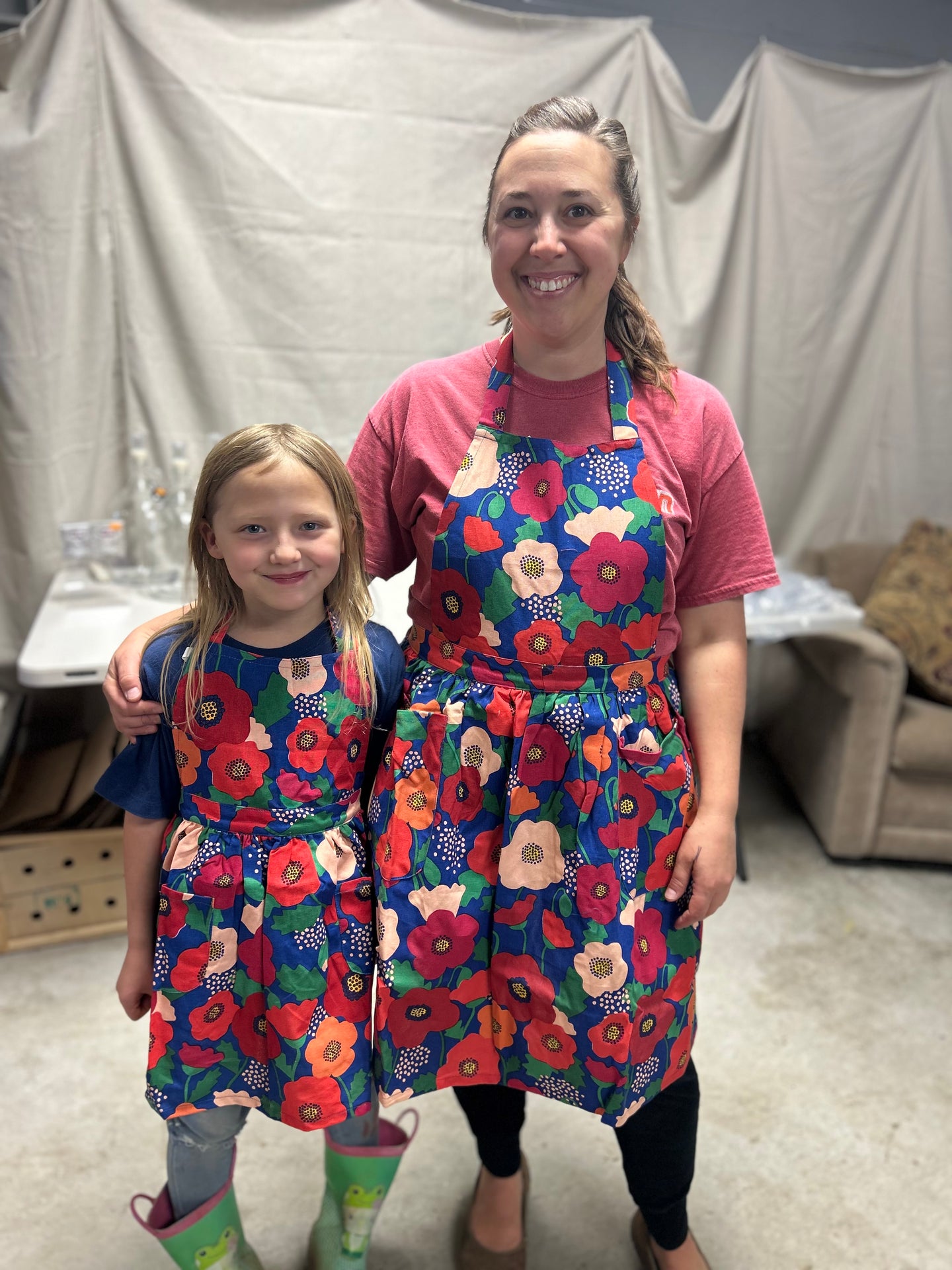 Adding a dash of whimsy and a dollop of color, this Poppy Minnie Kid's Size apron will stir up the creative juices of any small chef. Flush with vibrant reds, petal pinks, and cool blue and green, this pattern of amplified florals is an invitation to pause and appreciate the bold beauty of the Poppy.