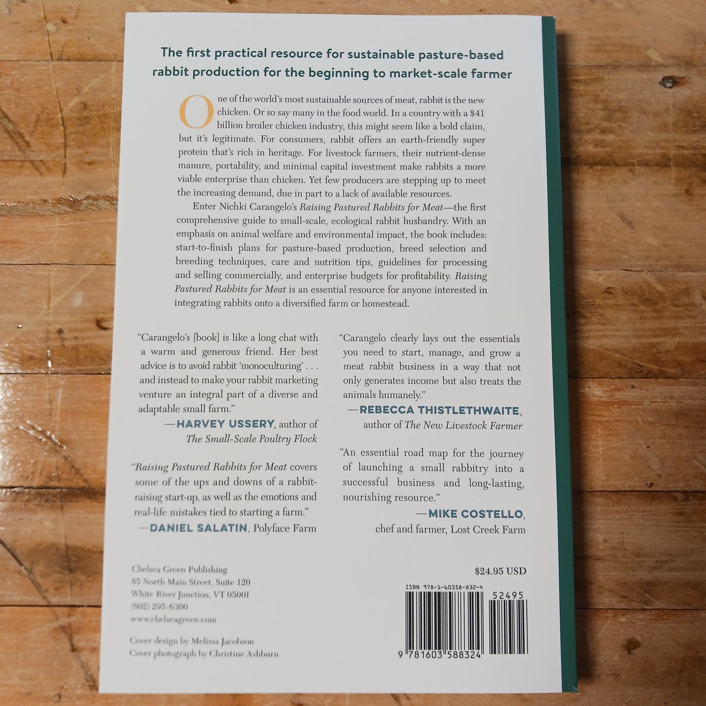Raising Pastured Rabbits for Meat is the first book to address the growing trend of ecological rabbit husbandry for the beginning to market-scale farmer. Inspired by Daniel Salatin, who has long been considered the pioneer in integrated rabbit farming, Nichki Carangelo proves that a viable pasture-based rabbitry is not only possible and user-friendly, it’s also profitable.