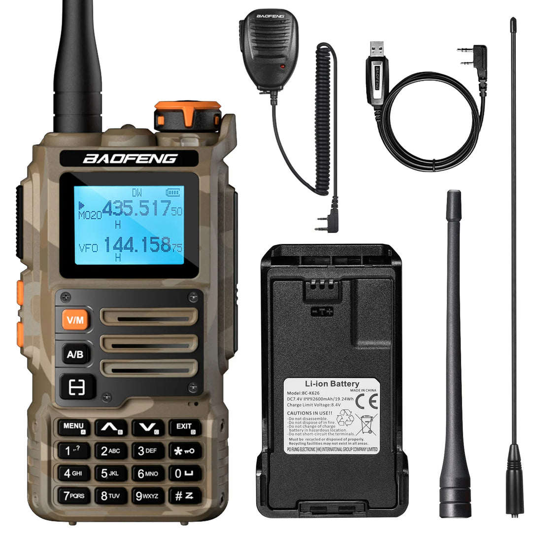 Powerful Tri-Band Amateur Radio: Boasts a 6W power output, supporting tri-band transmission and multi-band reception across a wide frequency range, including VHF, UHF, FM, Airband, 1.25M, 1M, and NOAA. Whether navigating urban areas or remote terrains, the K63 ensures clear and reliable communication. FCC ID: 2AJGM-NAK6