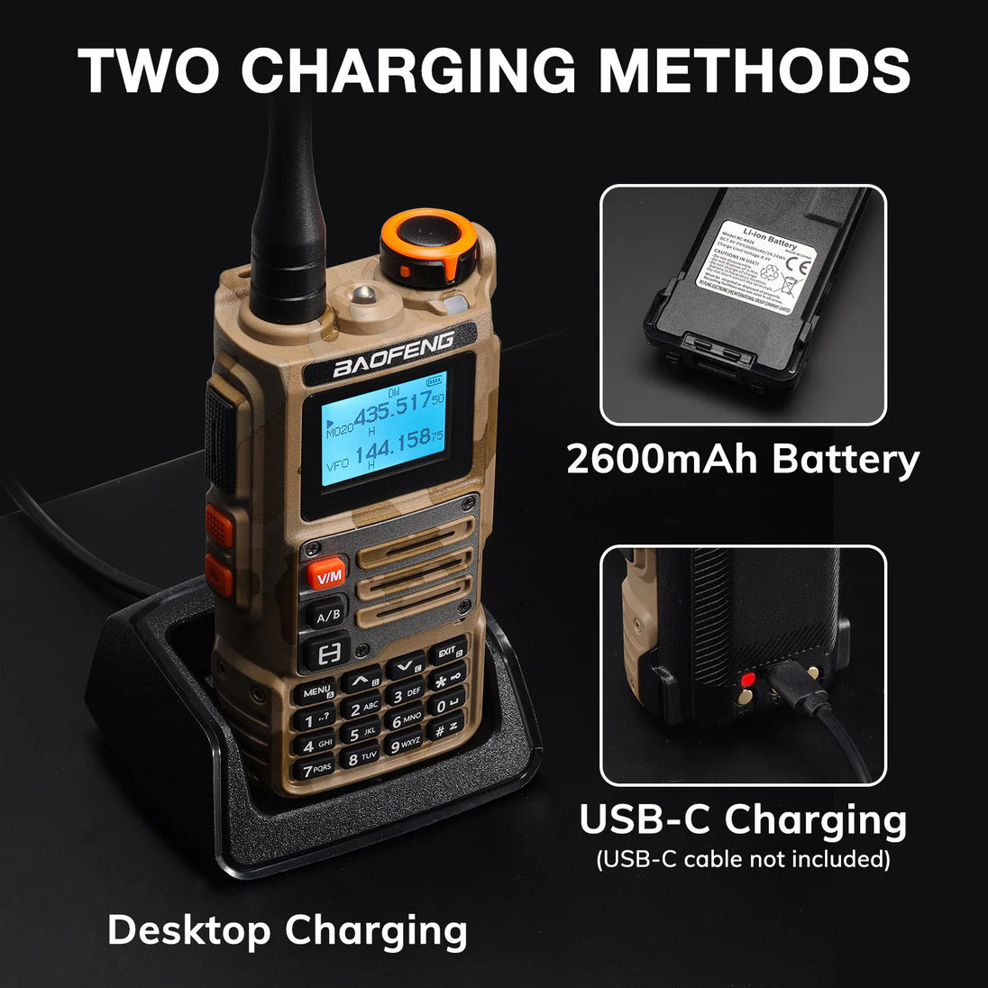 Long-Lasting Battery: Powered by a robust 2600mAh battery, the K63 walkie-talkie offers extended usage. With flexible Type-C and desktop charging options, recharging is easy and convenient, ensuring you're always ready for communication.