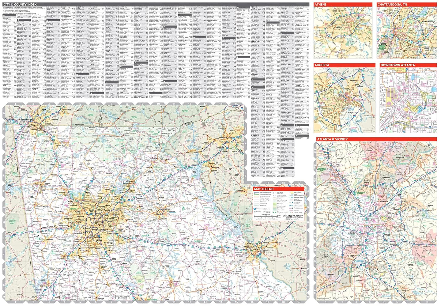 Rand McNally's Easy To Read State Folded Map is a must-have for anyone traveling in and around Georgia, offering unbeatable accuracy and reliability at a great price. Our trusted cartography shows all Interstate, U.S., state, and county highways, along with clearly indicated parks, points of interest, airports, county boundaries, and streets. The easy-to-use legend and detailed index make for quick and easy location of destinations. You'll see why Rand McNally folded maps have been the trusted standard for years. - Regularly updated, full-color maps. - 43% larger map with a bigger type size than the Rand McNally Folded Map. - Clearly labeled Interstate, U.S., state, and county highways. - Indications of parks, points of interest, airports, county boundaries, and more. - Mileage and driving times map. - Detailed index. - Convenient folded size. Coverage Area Detailed maps of: Albany, Athens, Atlanta & Vicinity, Downtown Atlanta, Augusta, Brunswick, Columbus, Macon, Savannah. Product Details Dimensions (unfolded): 28" x 40".