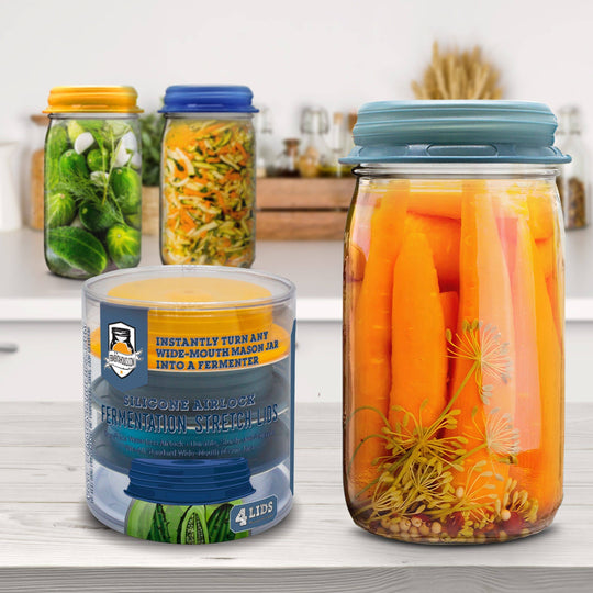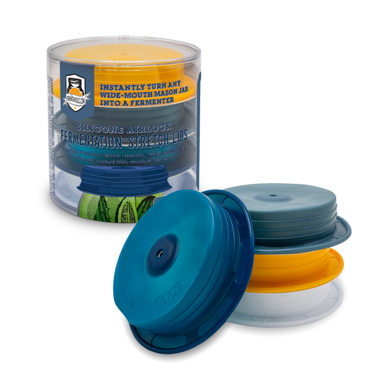 Silicone Fermentation Air Lock Stretch Lids PATENT PENDING FERMENTATION STRETCH LIDS - Just one single piece, each silicone stretch airlock lid immediately turns any wide mouth mason jar into a vegetable fermenter SET IT AND FORGET...Regular price $22.99 -