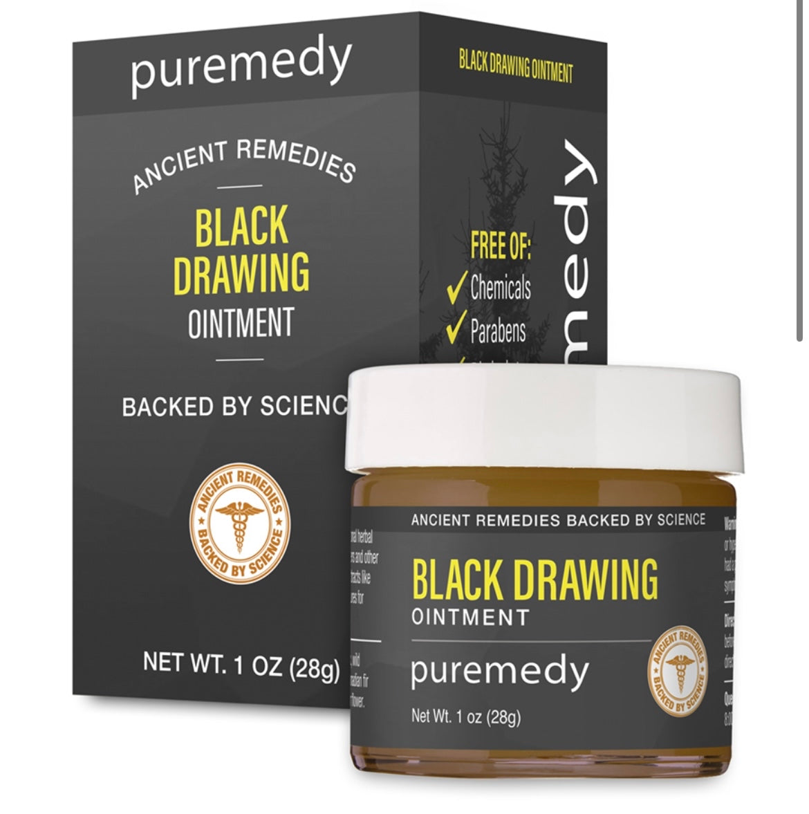 Puremedy's Black Drawing Ointment is a traditional herbal salve formulated with the extra drawing power of bloodroot to remove splinters and other foreign debris from the skin. Herbs, plants, roots and tree extracts like those found in this salve have been used by indigenous cultures for thousands of years for various ailments. As a note, our formula does not include zinc chloride.