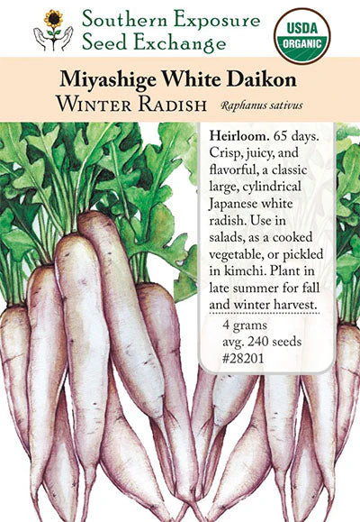 (Raphanus sativus var. longipinnatu) 65 days. [Originating from Asia, daikon (pronounced "dye-con") is the Japanese word for radish.]