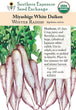 Juicy and flavorful, can be used fresh in salads, cooked in vegetable dishes, pickled, used in kimchi, or grated and mixed with ginger and soy sauce to make a dip. Usually harvested when 12 in. long and 2-3 in. in diameter, though it will grow much larger!