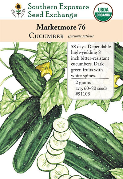 57 days. (cmv, pm, dm, als, an) A great high-yielding 8 in. bitter-resistant cucumber. Grows well in the Mid-Atlantic region as well as the North. A good dependable market variety. Dark green fruits are white-spined.