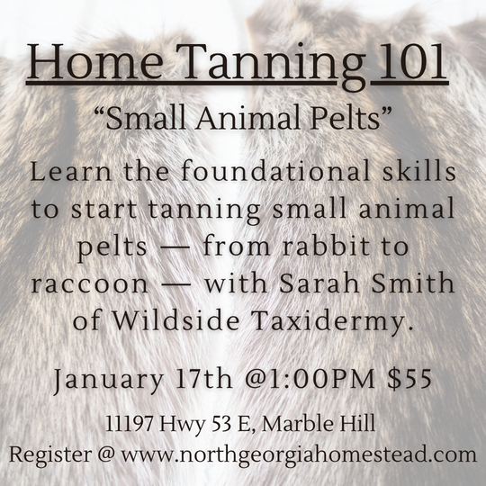 Home Tanning 101 "Small Animal Pelts" January 17th @ 1:00PM