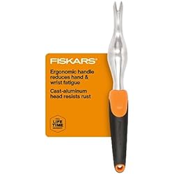 "Designed for easy use and lasting durability, our Ergo Weeder features a special handle design that reduces hand and wrist fatigue. The cast-aluminum head resists rust and won’t snap off while you’re weeding, no matter how tough your soil is. Additionally, the handle features a hang hole for convenient storage." - Fiskars