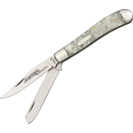 3.88" (9.86cm) closed. Stainless clip and spey blades. Cracked Ice Celluloid handle. Nickel silver bolster(s). Inlay shield.Regular price $13.99