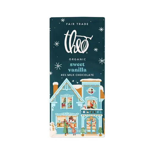 Theo Chocolate Organic Holiday Sweet Vanilla Milk Chocolate Bar 2.8 oz.