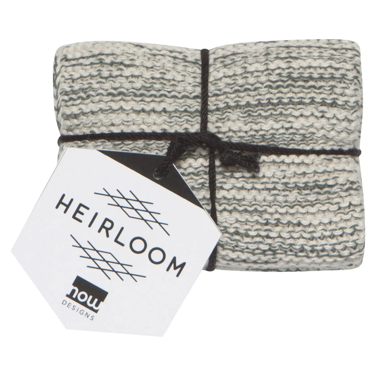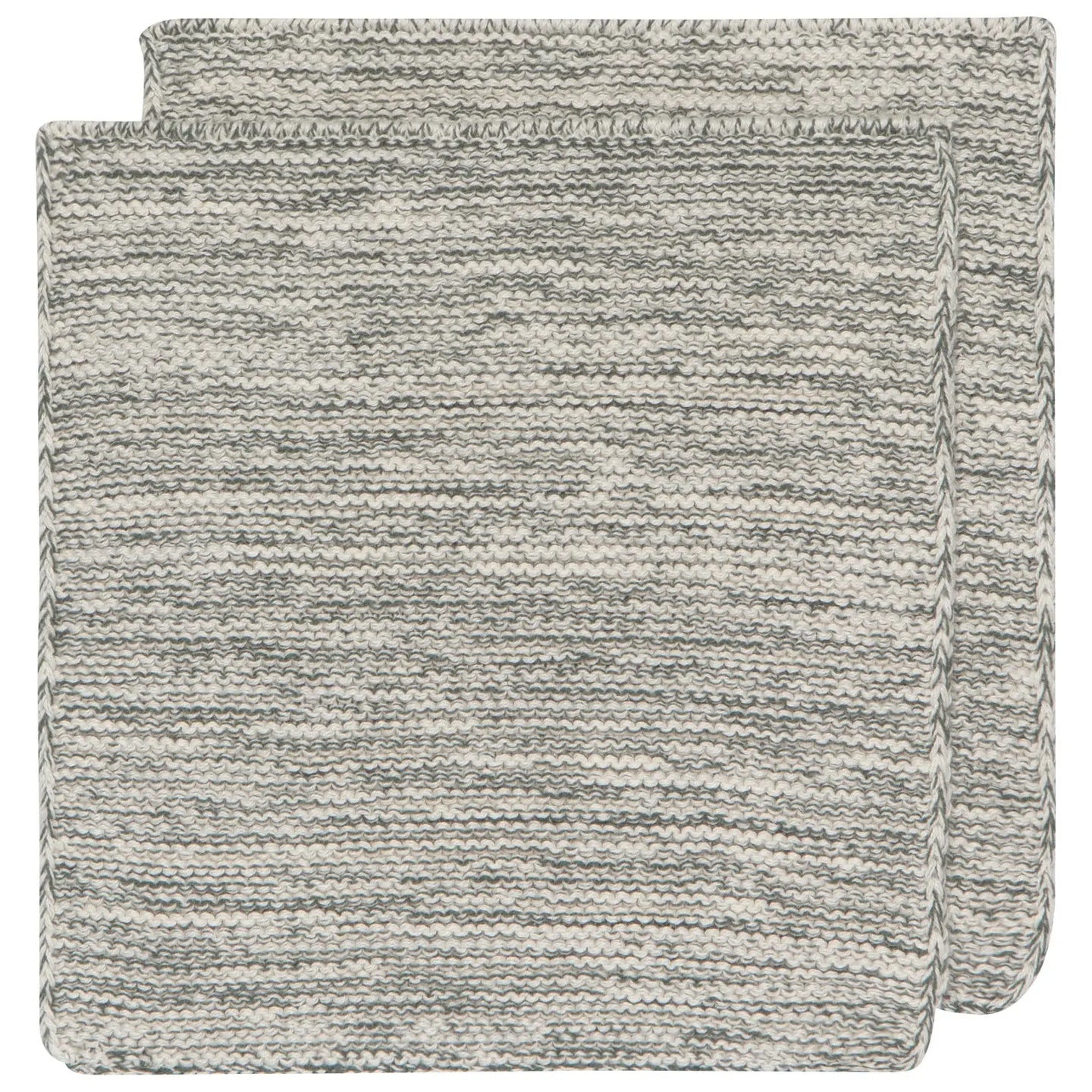 Sets of two dishcloths are soft on the hands yet tough on dirty dishes. Knit by hand with heathered cotton yarns. Part of the medley collection of color-coordinated kitchen and table linens from Danica heirloom. • size: w8 x l8in. • material content: 100% cotton. • care instructions: wash warm, dry low.
