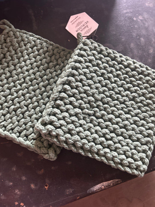 A chunky knit potholder made from 100% cotton protects hands from hot objects. Set one on the table for the perfect teapot trivet. A hanging loop makes for easy storage. Part of the medley collection of...Regular price $7.50 -
