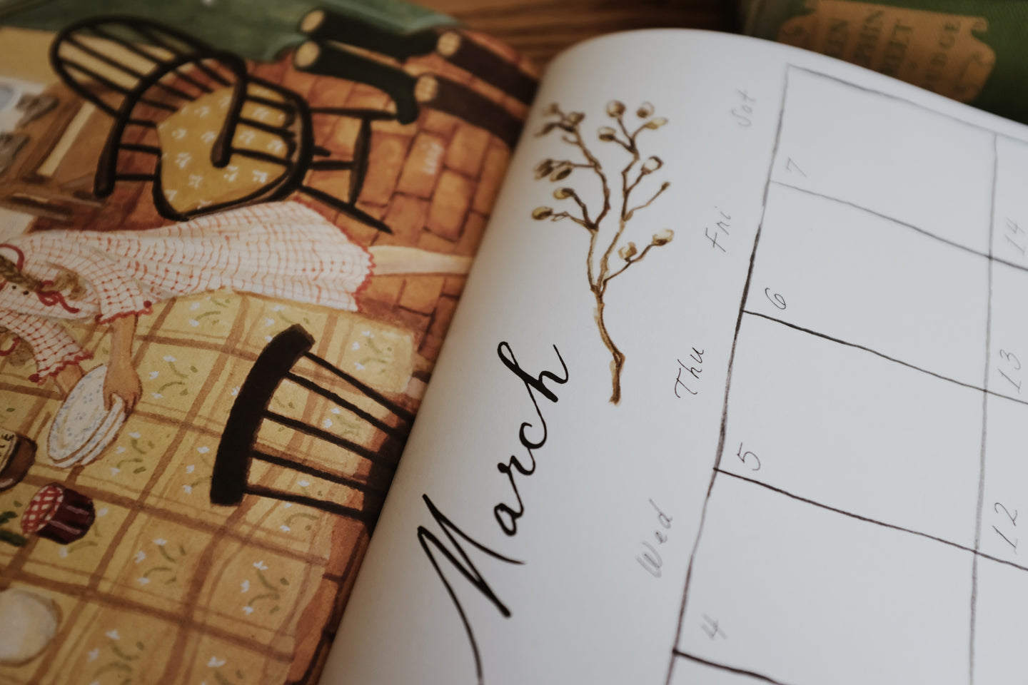 10x13 inches hanging wall calendar, printed in and shipped from the USA on watercolor texture paper throughout. Outer / inner papers are 270gsm and 120gsm. Drilling is omitted so images are unmarked.