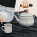 A beautiful statement piece for your camp kit or home kitchen. Ideal for quickly heating water for camp coffee, tea, hot chocolate, and more. This kettle features a hand-finished, baked stainless steel trim that creates a bronze-like patina finish.