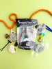Dig into imaginative play with the Dinosaur Fossil Dig KidDough Play Kit! This all-in-one set features textured grey dough with hidden fossil charms, a bone puzzle to excavate, a clear dino egg mold, magnifying glass, tweezers, skeleton, and fossil stamper. Made with non-toxic, food-grade ingredients, KidDough stays soft and pliable for over 120 hours of play and washes out easily with warm water. Handmade in the USA. Perfect for ages 3+.